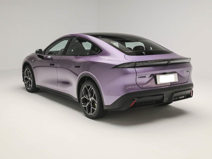 再来看车尾部分,车尾设计将功能性与观赏性融为一体。贯穿式尾灯中间镶嵌可发光车标,夜晚点亮后形成完整光带,辨识度拉满。最亮眼的是多挡可调电动升降后扰流板,高速行驶时自动升起,可提供下压力,显著增强车身稳定性。后包围采用扩散器造型,与车头扰流前唇形成空气动力学闭环,配合牌照框内凹设计,让运动感更具层次感。